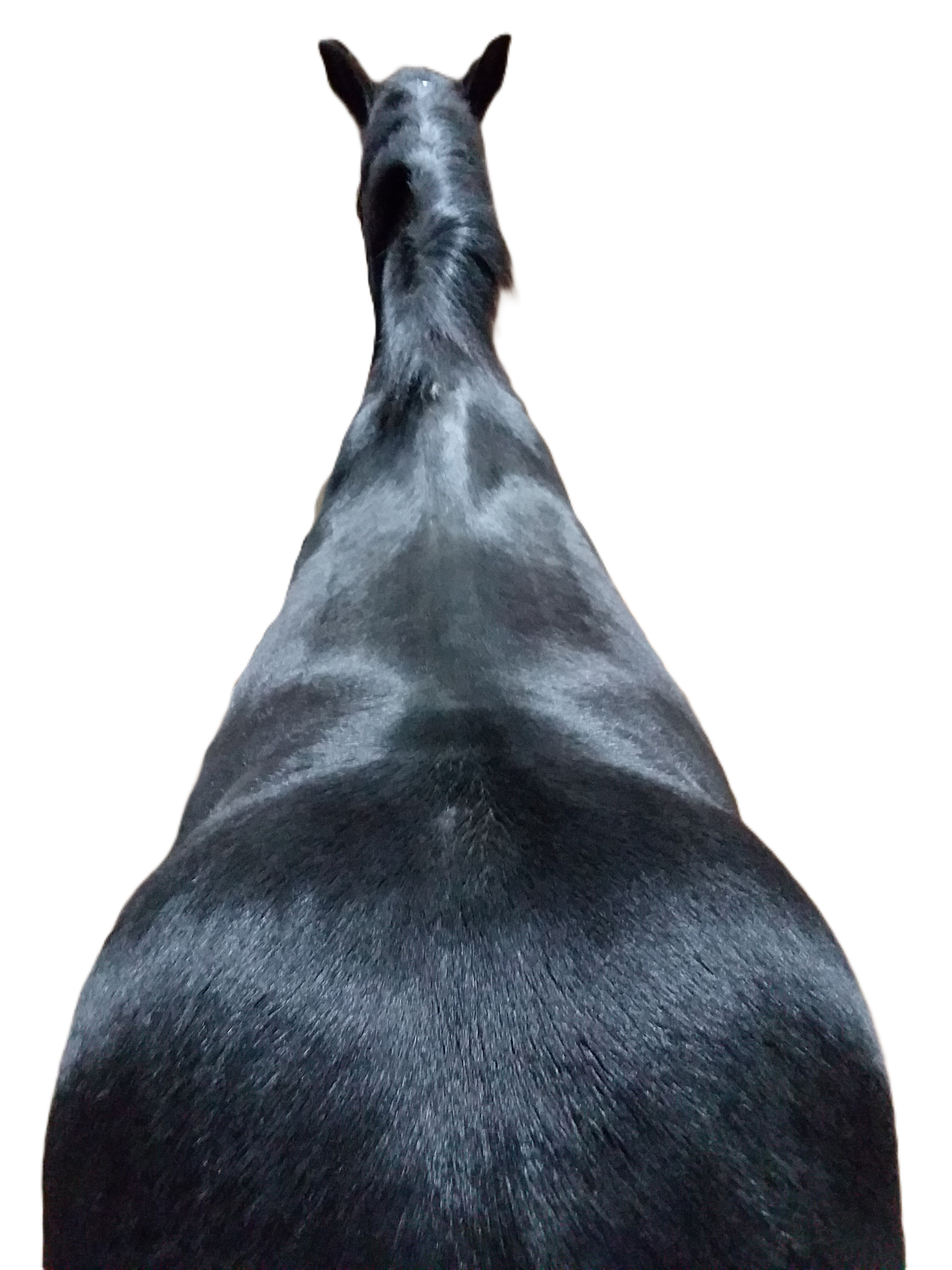 When seen from above, a “pear shaped rib cage” will look a bit like a pear, with the narrowest part at the wither (picture the stem at the chest) and the widest part under the center of the rib cage. In such cases, the saddle may travel to the narrowest part of the barrel, which is forward of the optimal position, and if the horse also has flat shoulders and a narrow wither, the forward slip is extremely likely.